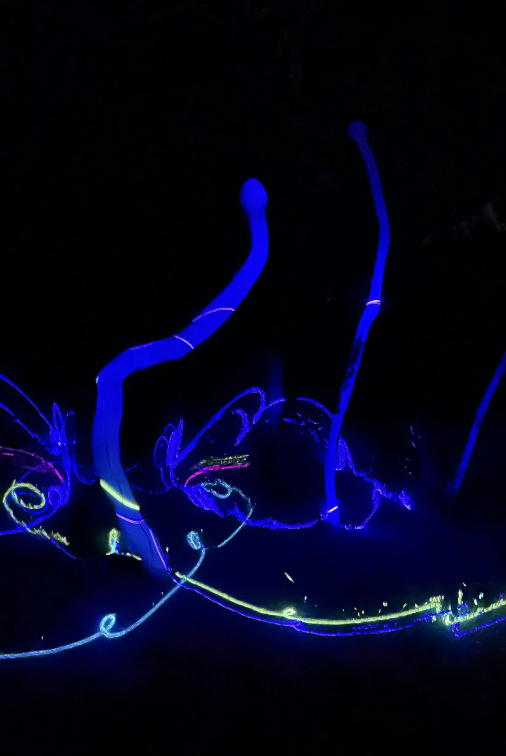 Michael’s installation work emerged from my deep dive into the mushroom ecstasy. Before that I was a traditional visual artist working in various mediums, mostly welded steel. After encountering the visions of high dose mushrooms I was compelled to try to recreate something of the extraordinary visual miracle I encountered.