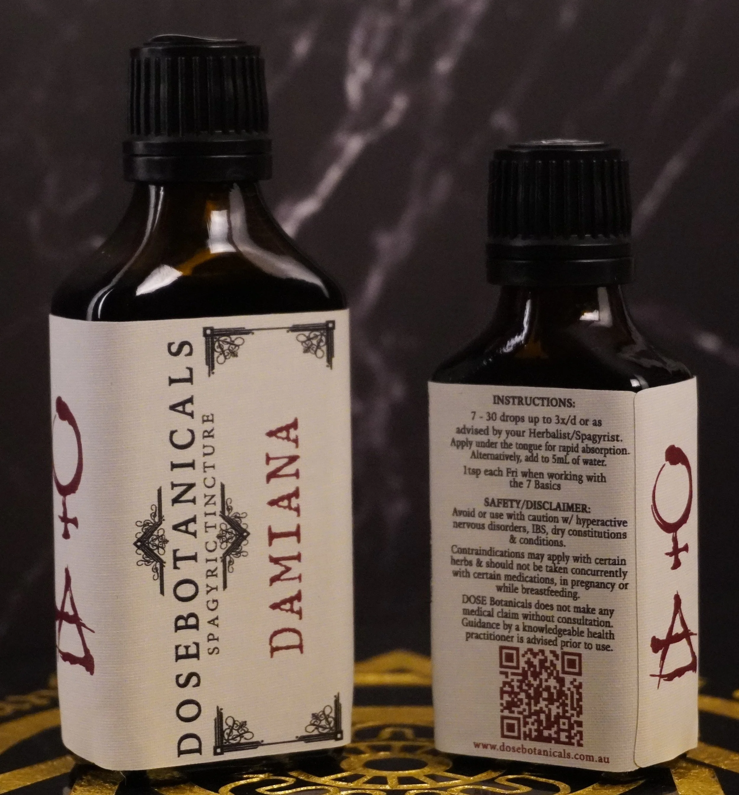 30mL Damiana (Turnera diffusa) & Sweet Annie (Artemisia annua) Spagyric tinctures, and a 15mL jar of Trauma ointment (all-purpose ointment filled with homegrown & specially extracted herbs). See @dosebotanicals www.dosebotanicals.com.au.